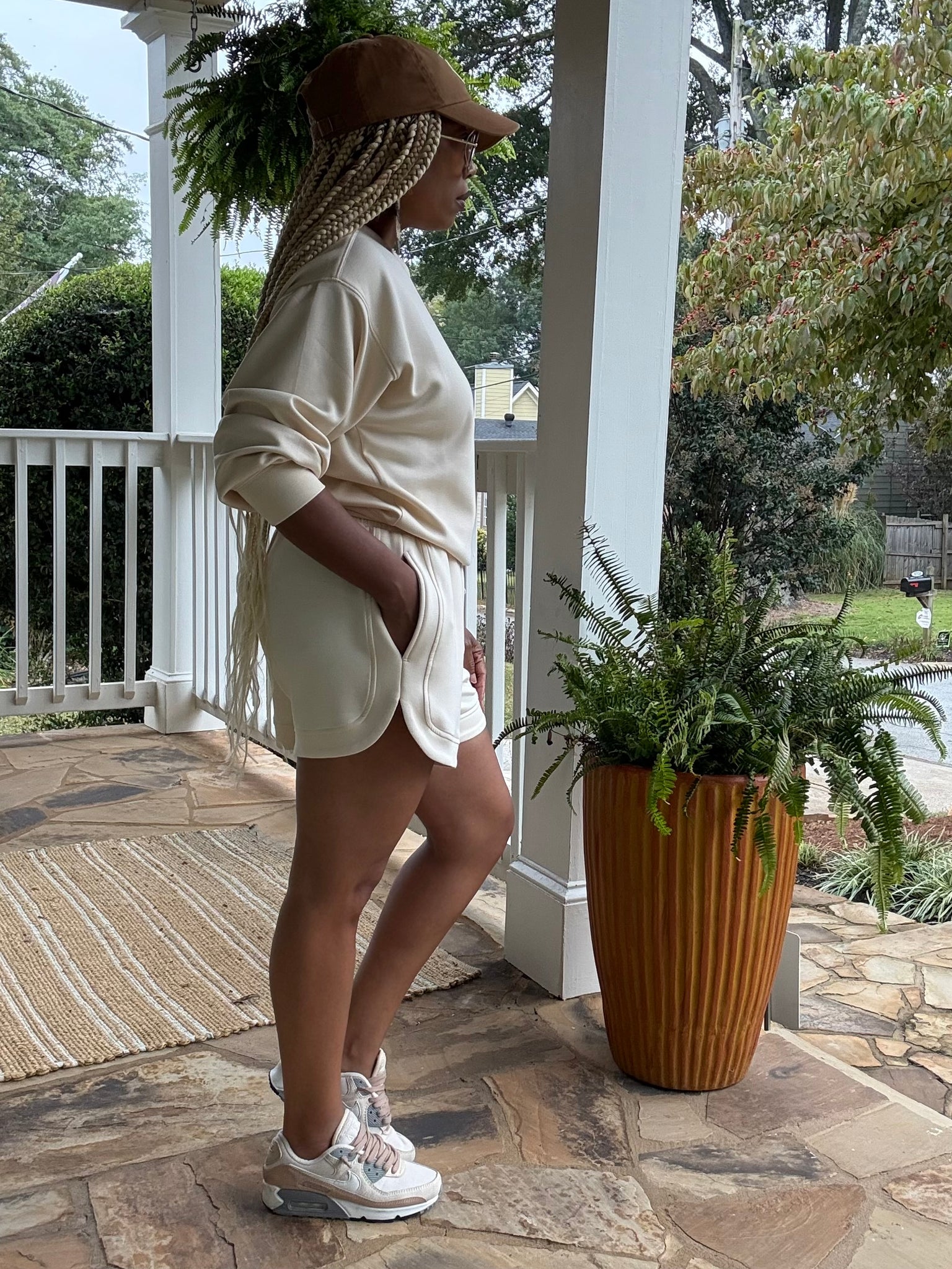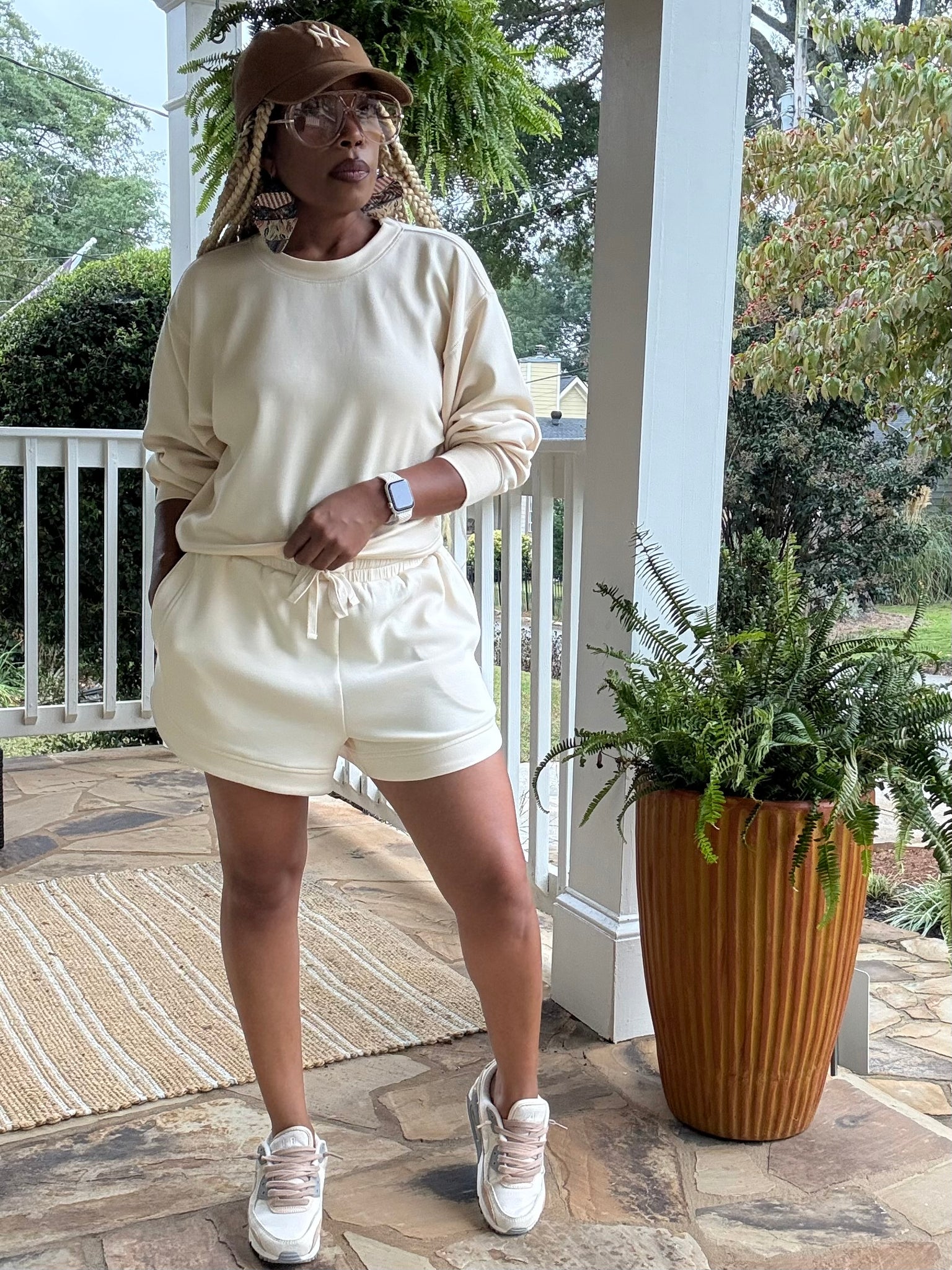 Sporty chic! When you’re not quite cold but kinda. 2 pc set. Great lounge wear for early Fall. Spongy soft.