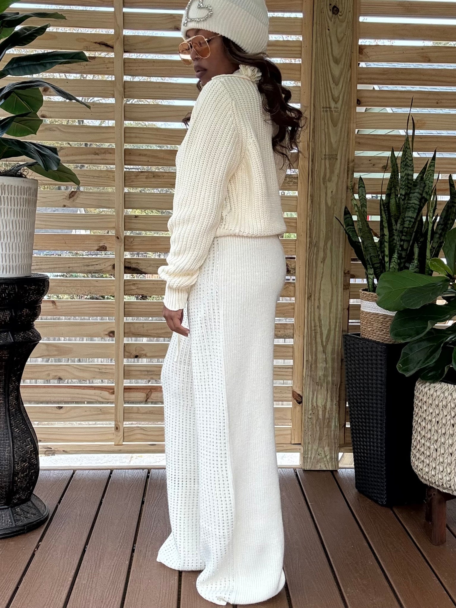 It’s the season, or something like that. ZOOM IN. 2 pc set. Lush soft cream knit sweater, front square rhinestone embellishments.